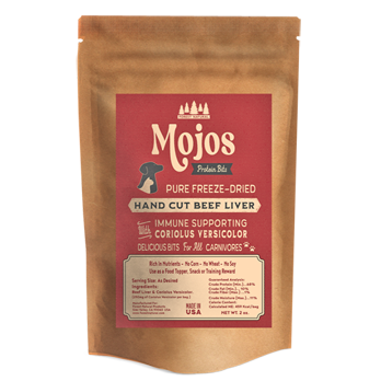 These pure, hand cut Freeze Dried Beef Liver bits are delicious and nutritious for all carnivores. They provide a great protein booster along with the immune support provided by the Coriolus Versicolor mushroom. These tasty treats are great as a food topper, a training reward, or just a healthy snack.